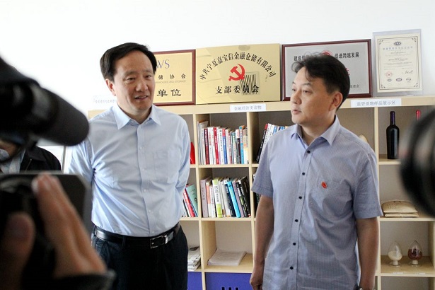 2016年5月18日上午,寧夏回族自治區(qū)黨委書記、人大常委會主任李建華在自治區(qū)黨委常委、銀川市委書記徐廣國,自治區(qū)黨委常委、常務(wù)副主席張超超的陪同下,來到嘉寶信金融倉儲有限公司進(jìn)行調(diào)研座談,了解公司業(yè)務(wù)模式及創(chuàng)新成果。董事長俞曉鵬就公司的業(yè)務(wù)發(fā)展情況,全國首創(chuàng)的葡萄酒原汁、奶;铙w及農(nóng)業(yè)種植未來收益權(quán)等創(chuàng)新類質(zhì)押種類的成功案例做了詳細(xì)介紹。并對“嘉寶信模式”的推廣情況、取得的進(jìn)展做了匯報(bào)。李建華書記對嘉寶信在解決中小企業(yè)以及三農(nóng)融資難的問題上所做的創(chuàng)新給予了充分肯定,并對企業(yè)下一步的發(fā)展提出了希望和要求。