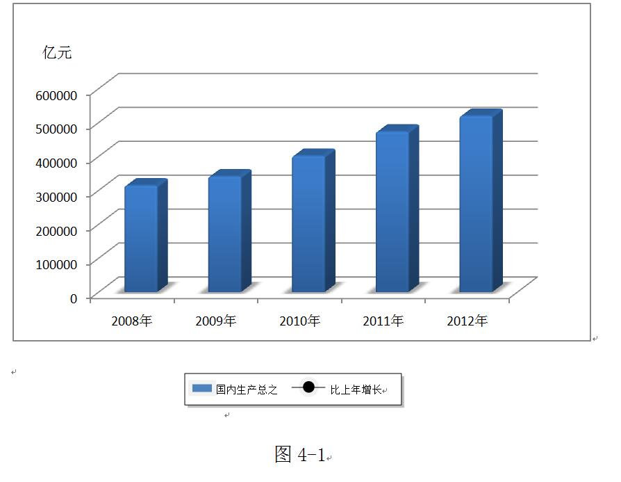 2008年宏觀經濟復雜多變,上半年從緊的貨幣政策導致銀行信貸緊縮,倉儲金融業(yè)務總量上受到限制,下半年美國金融危機導致尸體經濟受阻,出現(xiàn)了倉儲融資業(yè)務供需兩方同時萎縮,對發(fā)展倉儲金融業(yè)務非常不利。隨著國家積極財政政策和寬松或穩(wěn)健貨幣政策的實施,2009年中國經濟企穩(wěn)向好,投資快速增長,消費市場活躍,進出口在下半年快速回升,工業(yè)生產明顯恢復,隨著全球經濟的平穩(wěn)復蘇、國內民間投資的意愿增強、企業(yè)效益的好轉,國民經濟企穩(wěn)回升的勢頭進一步得到鞏固和加強。中國經濟經過多年的持續(xù)、快速發(fā)展,經初步核算,2012年我國全年國內生產總值419322億元(見圖4-1),比上年增長7.8%,增長速度明顯快于世界主要經濟體,對世界經濟增長的貢獻率繼續(xù)上升。根據(jù)國際貨幣基金組織公布的預測數(shù)據(jù),2012年世界經濟增速預計為3.2%。我國7.8%的增長速度比美國快5.5個百分點,比歐元區(qū)快8.2個百分點,比其他金磚國家最高快6.8個百分點,最低也要快出3.3個百分點。我國已經連續(xù)4年新增GDP達到世界經濟增量的20%左右,居全球第一。在整體經濟持續(xù)走強的同時,中小企業(yè)融資需求將快速提升,銀行對中小企業(yè)的貸款積極性也會提高,宏觀經濟支撐著金融倉儲業(yè)的發(fā)展。