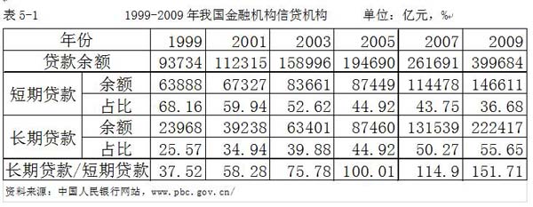 當(dāng)前,我國細(xì)帶機(jī)構(gòu)的失衡現(xiàn)象越來越嚴(yán)重,已引起政策層的高度重視。自2007年下半年起,美國次貸危機(jī)逐漸引發(fā)全球性金融危機(jī),并導(dǎo)致全球性的經(jīng)濟(jì)衰退。為應(yīng)對經(jīng)濟(jì)衰退,我國啟動(dòng)了4萬億元的經(jīng)濟(jì)刺激計(jì)劃,引起信貸規(guī)模劇增,2009年全年新增貸款9.59萬億元,其中約76%的新增貸款為中長期貸款,我國貸款“長期化”現(xiàn)象十分嚴(yán)重。