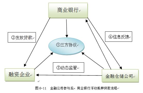 專業(yè)性金融倉儲公司參與后,業(yè)務(wù)主體由原來兩方演變成商業(yè)銀行、企業(yè)、金融倉儲公司三方,業(yè)務(wù)模式的流程如圖6-11所示。