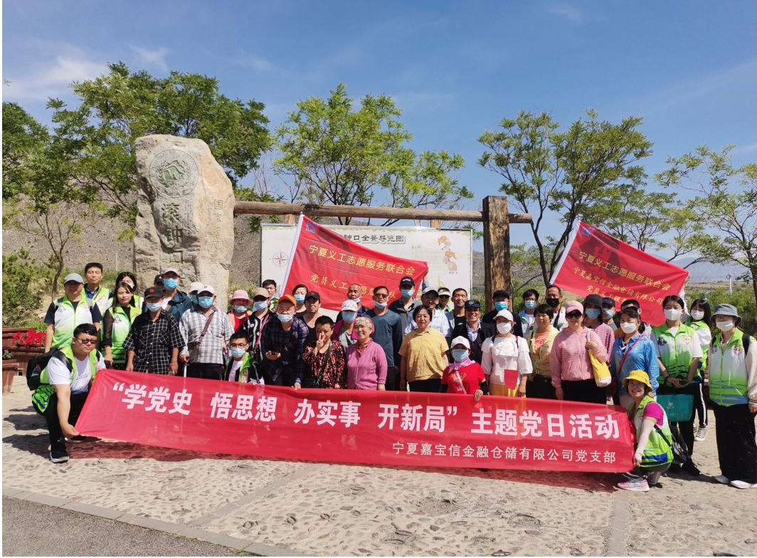 為深入開展黨史學習教育活動,把學習黨史同為民服務結(jié)合起來。2021年6月10日,寧夏嘉寶信金融倉儲有限公司黨支部開展“學黨史、感黨恩、跟黨走”青年助殘志愿服務活動,組織黨員及青年志愿者帶領殘障人士到賀蘭山和西夏王陵進行參觀。本次活動由寧夏義工志愿服務聯(lián)合會主辦,金鳳區(qū)殘聯(lián)承辦,寧夏嘉寶信金融倉儲有限公司黨支部協(xié)辦;顒蝇F(xiàn)場吸引了近20名黨員及青年志愿者參與。